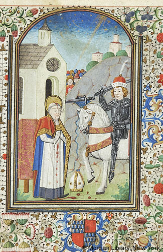 Margins decorated with floreate ornament. In lower margin, heraldic shield of Pierre de Bosredont (quarterly, vair and gules).